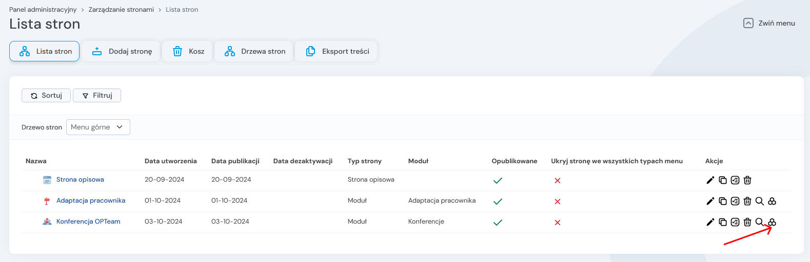Lub z poziomu Aplikacji Zarządzania stronami na dwa sposoby: