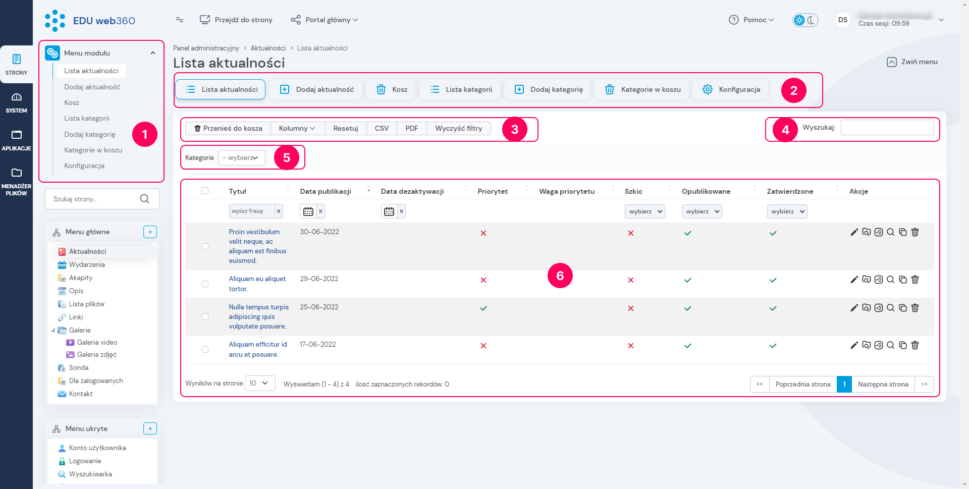 2. Menu modułu - dodatkowe. Powielenie pozycji z menu aplikacji.